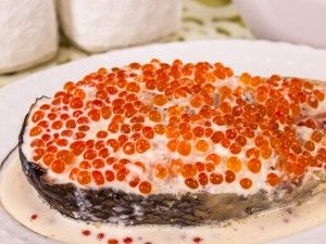- ठंडा क्रीम सॉस में कैवियार डालें, ध्यान से मिलाना।