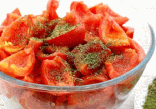 - सूखी जड़ी बूटियों के साथ टमाटर मिलाएं।