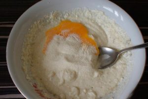 - हमने वहां एक कच्चा अंडा और सूजी डाला। सब कुछ मिलाएं चम्मच या एक ब्लेंडर के साथ भी हराया।