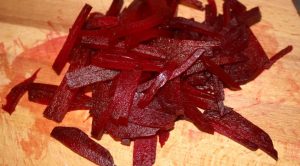 - हमने उबली हुई जीभ और बीट्स को समान क्यूब्स में काट दिया आकार। चुकंदर की चटनी के लिए थोड़ा चुकंदर छोड़ देना चाहिए।