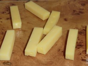 - चिकन पट्टिका को नमक के साथ उबालें, ठंडा करें और बड़े काट लें टुकड़ों में।