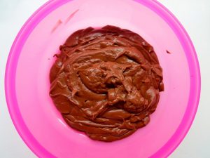 - पैनकेक के एक तिहाई आटे को एक अलग डिश में डालें, कोको जोड़ें और अच्छी तरह से मिलाएं।