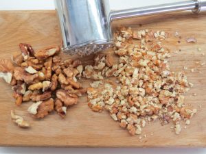 - अखरोट को बारीक काट लें और क्रीम में जोड़ें।