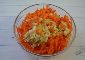 - एक मोटे grater पर गाजर और केले रगड़ें।
